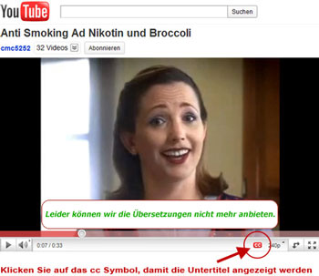Links zu Youtube Hier finden Sie YouTube links mit Dokumentationen, Interviews und Spots. Viele der kurzen lustigen Spots kommen aus dem Ausland und sind auf Englisch. Die Tabaklobby ist mächtig. Wiederholt wurden bestimmte mit Untertiteln übersetzte YouTube Beiträge lahmgelegt, welche die Tabakindustrie betreffen. Wir mussten daher auf die offiziellen US Seiten ohne Übersetzung verlinken. Hierbei ging es immer wieder um drei Spots: 7 Firmenchefs der Zigarettenindustrie lügen unter Eid, dass Nikotin nicht süchtig macht. Ein PR-Sprecher von Philipp Morris vergleicht die Gefahren des Rauchens mit dem gefahrlosen Essen von Apfelmus. Eine PR Mann behauptet Rauchen sei nicht schädlich und manche Mütter hätten sogar lieber kleinere Babies. Leider können wir die Übersetzungen nicht mehr anbieten. Kapitel 1 Vom „gerne“ zum „gerne müssen“ 1. So wird Brokkoli das Lieblingsgericht Ihrer Kinder! online http://www.youtube.com/watch?v=u2StUtlZ7xc Kapitel 2 Werbung & Hollywood als Vorbilder 1. Kinder sind die Hauptzielgruppe der Nikotindealer. online http://www.youtube.com/watch?v=BPWmS18ksnc 2. Kinder imitieren so gerne! online http://www.youtube.com/watch?v=688uHz6QYkQ 3. Kinder in der dritten Welt. Die Konsumenten von morgen. online http://www.youtube.com/watch?v=Gfetf6YXMio Kapitel 3 Die Nikotin-Dealer 1. „Nikotin macht nicht süchtig.“ Die Konzernführer der Tabakindustrie unter Eid. online http://www.youtube.com/watch?v=A6B1q22R438 2. „Ich setze auf den mündigen aufgeklärten Verbraucher, der eine Entscheidung...“ Das Blabla hat sich nicht geändert. Süchtig zu werden, ist keine Entscheidung. online http://www.youtube.com/watch?v=9rm_-J5TmgE 3. Fest am Haken: Wie oft am Tag müssen Sie rauchen? online http://www.youtube.com/watch?v=cMRFIU_sADI 4. Süchtig: Noch eine Zwangspause. online http://www.youtube.com/watch?v=QHOaJSXr9HI 5. Schwarzer Humor: Kommen Sie zu ToxiCorp und werden Sie Ersatzraucher. online http://www.youtube.com/watch?v=Ao8HsYuc808 6. Rache ist süß. online http://www.youtube.com/watch?v=U8CKfuVLUKU 7. 1967: Wir wissen es seit über 45 Jahren. online http://www.youtube.com/watch?v=s_6Tz6EqKSk 8. Unterhaltsam: Vorschau für den Film „Inside“ und die Machenschaften der Nikotinindustrie. online http://www.youtube.com/watch?v=qfY2I7Ipyvo 9. „Inside“ DVD bei Amazon.com online http://www.amazon.de Kapitel 4 Die Biochemie des Glücks 1. So verändert Nikotin Ihr Belohnungszentrum im Gehirn online http://www.youtube.com/watch?v=XDA0xytSWXs 2. Stop Smoking - Why is it so hard? online http://www.youtube.com/watch?v=5ewwzazHfq4 Kapitel 5 Mein Hund, meine Kinder. Der unangenehme Druck der Passivraucher 1. Spiegel-Artikel: Geheime Gesandte - Hochrangige Gesundheitswissenschaftler aus Deutschland ließen sich jahrelang Studien von der Tabakindustrie bezahlen. online http://www.spiegel.de 2. Die Welt hat sich verändert. online http://www.youtube.com/watch?v=6_caR1bkOEg 3. Werbung aus den 50ger Jahren. So idyllisch wurde passiv geraucht. online http://www.youtube.com/watch?v=RiyQBRpr5AE 4. Ihren Kindern zuliebe. Passiv rauchen im Wagen. online http://www.youtube.com/watch?v=FF7G0IaL15M 5. Gefahren im Haushalt online http://www.youtube.com/watch?v=J3POpdFlxWE 6. Man ist ja leider so unbeliebt. Wer kennt es nicht... online http://www.youtube.com/watch?v=1BAwXmtJoj0 Kapitel 7 Rauchen ohne Vorteile für die Psyche 1. Merkfähig: Die Folgen des Nikotins - gereizt, nervös und schlecht gelaunt. online http://www.youtube.com/watch?v=38CWAy6-2bc online http://www.youtube.com/watch?v=WpQnbjypT2k online http://www.youtube.com/watch?v=ktLt2uIfpZk Kapitel 11 Die Macht der Konditionierung 1. Das Interview online http://www.youtube.com/watch?v=bJ2VUas8IYA 2. Typische Rauchsituationen – einmal anders erzählt... online http://www.youtube.com/watch?v=mE-_zA-ZZI0 3. Unsere Beweggründe zu rauchen – einmal anders erzählt... online http://www.youtube.com/watch?v=8ER33uEOfAI Kapitel 14 Die Macht der Konditionierung 1. Süddeutsche Zeitung. Mehr zu Polonium und Radioaktivität in Zigaretten online http://www.sueddeutsche.de/wissen/polonium-in-zigaretten-muell-in-der-kippe-1.631801 2. Weitere Lügen der Nikotindealer. Kleinere Babies sind nicht schlimm. online http://www.youtube.com/watch?v=VpwcF3Malj8 3. Die Oscar Verleihung. online http://www.youtube.com/watch?v=JUrOd0d7b_M 4. Das Konzern Meeting. Wie werden wir den Dreck los. online http://www.youtube.com/watch?v=g0FDvmkIzok 5. Kohlenmonoxid Ursache für Fettablagerungen an Ihren Arterien online http://www.youtube.com/watch?v=ef3gofQcOKk 6. Die Arterie eines 32 jährigen Rauchers. online http://www.youtube.com/watch?v=lEc-Rsv9pMc Kapitel 15 Die Milchmädchenrechnung 1. Den müssen Sie gesehen haben: Rauchen ist nicht schädlicher als Apfelmus. online http://www.youtube.com/watch?v=2o5LJITMBLc 2. World Trade Centre – das haben wir jeden Tag. online http://www.youtube.com/watch?v=Fs7KYIsQuvE 3. Der Krimi online http://www.youtube.com/watch?v=6FafdD6VzkU 4. Raucher-Entschuldigungen warum sie nicht aufhören können. online http://www.youtube.com/watch?v=8EHBA5JHd0E 5. Haben Sie auch nie die Zeit aufzuhören? online http://www.youtube.com/watch?v=CEHbvKgXi-4 6. 1200 jeden Tag. online http://www.youtube.com/watch?v=Y_56BQmY_e8 Kapitel 16 Und was verbessert sich? 1. Verbesserungen nach dem Rauchstopp. Es lohnt immer aufzuhören. online http://www.youtube.com/watch?v=ovI4kKJ7UTg Kapitel 17 Wie entscheiden Sie sich? 1. Das Interview online http://www.youtube.com/watch?v=u3guc2PUqAQ Kapitel 23 Wie entscheiden Sie sich? Dokumentation: Nur noch eine Zigarette. 3 Menschen hören auf 3 verschiedene Arten auf zu rauchen. online http://www.youtube.com/watch?v=78SsQYtlFcg online http://www.youtube.com/watch?v=jE8IKVajDY4 online http://www.youtube.com/watch?v=KmhBKd93hWQ online http://www.youtube.com/watch?v=wUC49FXUmN8 online http://www.youtube.com/watch?v=NEGSa0NHnmw online http://www.youtube.com/watch?v=tG25F-7D_bE Kapitel 24 Hypno